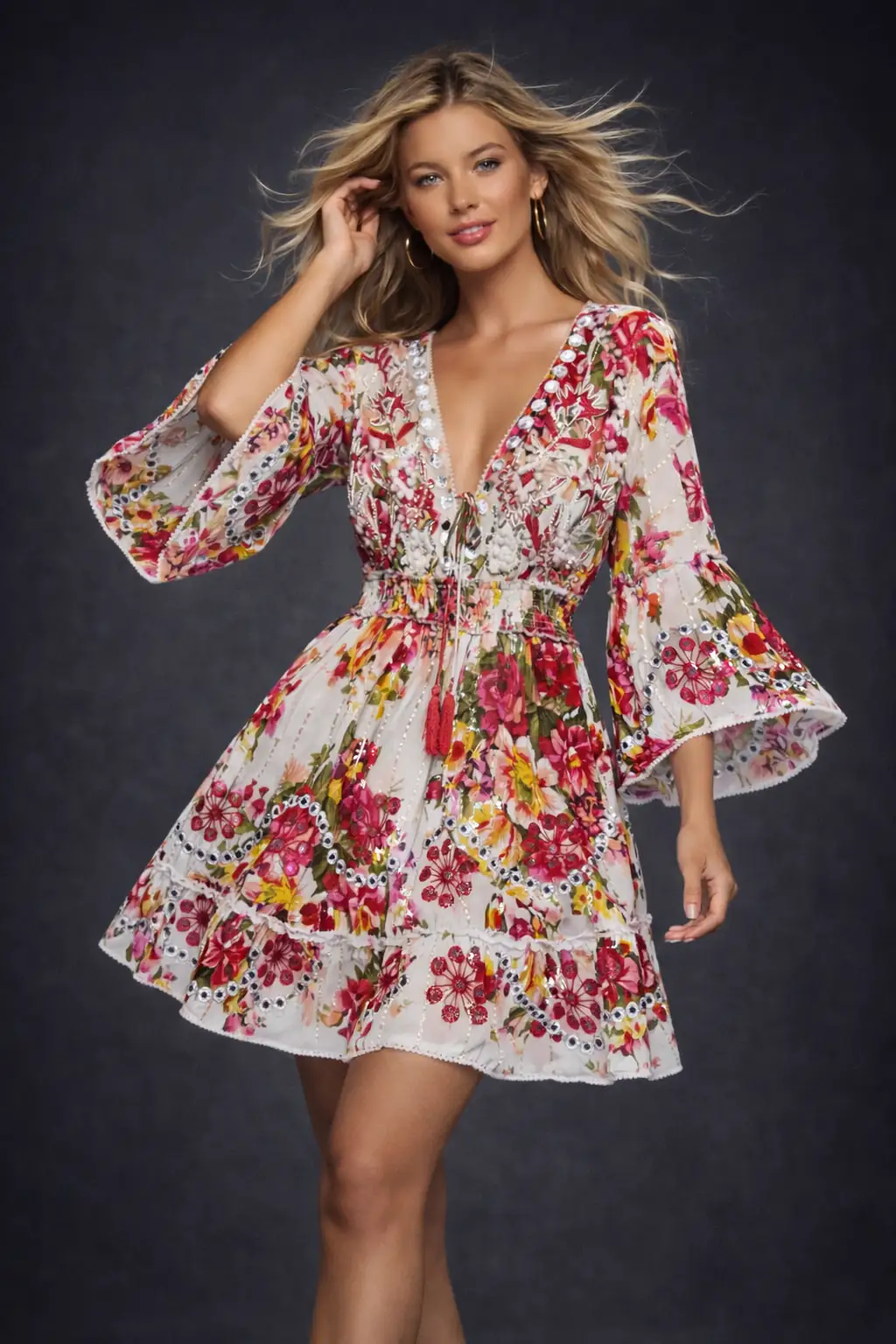 Elbisenin çiçek detayları çok zarif. Üzerimde çok feminen ve şık durdu. Yaz davetleri için gerçekten ideal.