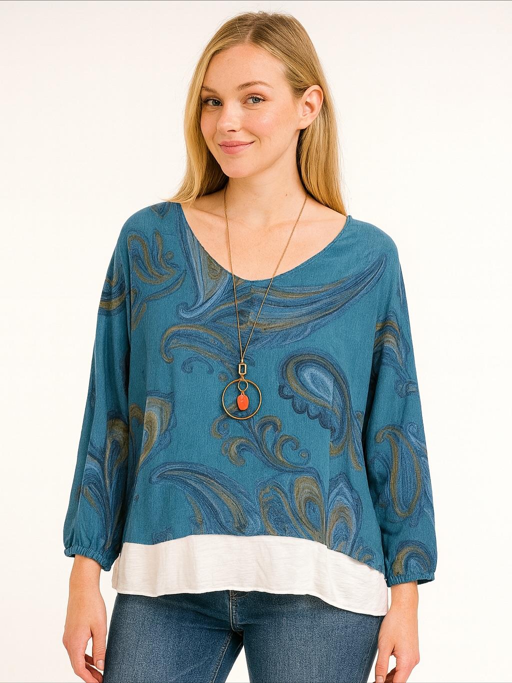 İtalyan İkili Desenli Triko Takım - TURKUAZ