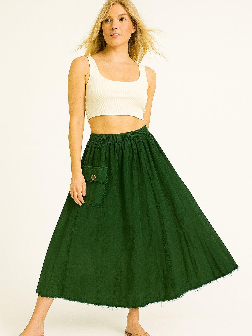 İtalyan Kadife Cepli Etek - YEŞİL
