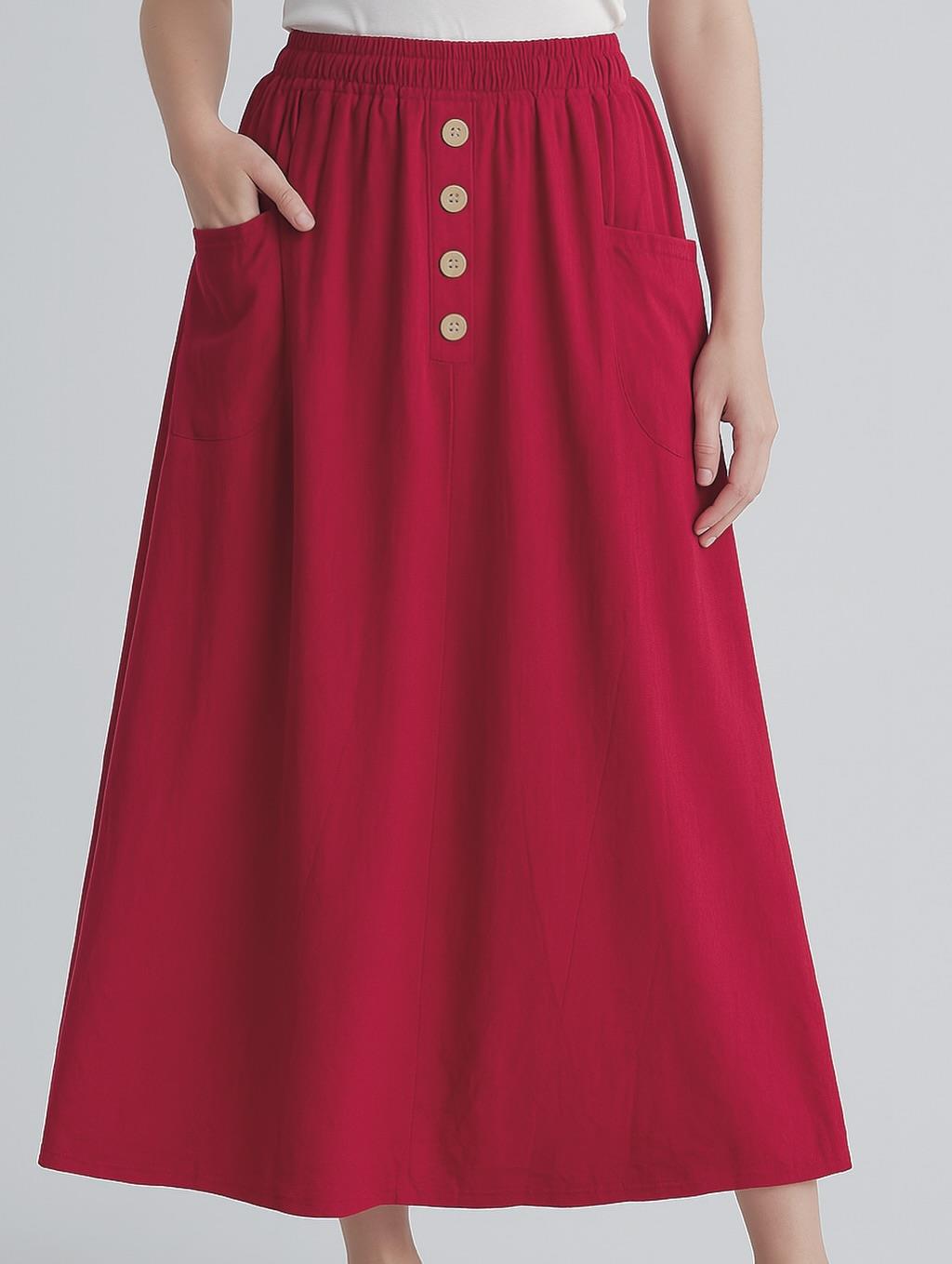 İtalyan Kadife Düğme Detaylı Etek - BORDO