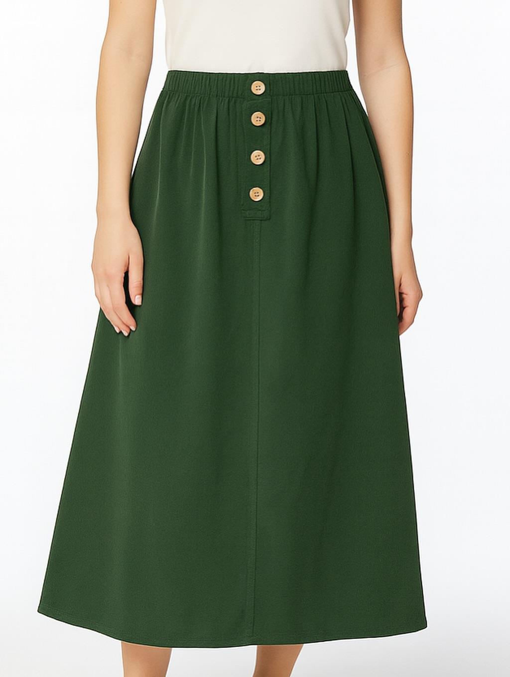İtalyan Kadife Düğme Detaylı Etek - YEŞİL