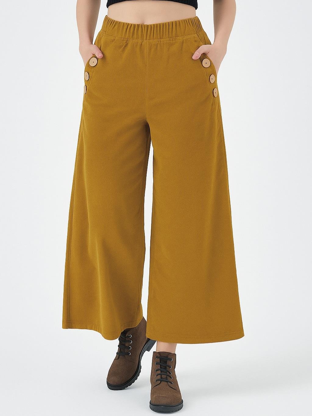 İtalyan Kadife Düğme Detaylı Pantolon - HARDAL