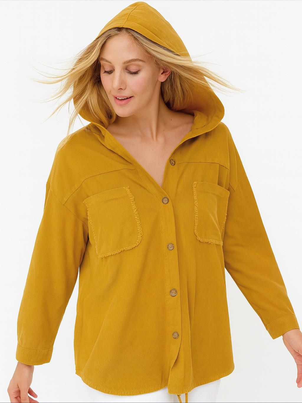 İtalyan Kadife Kapüşonlu Ceket - HARDAL