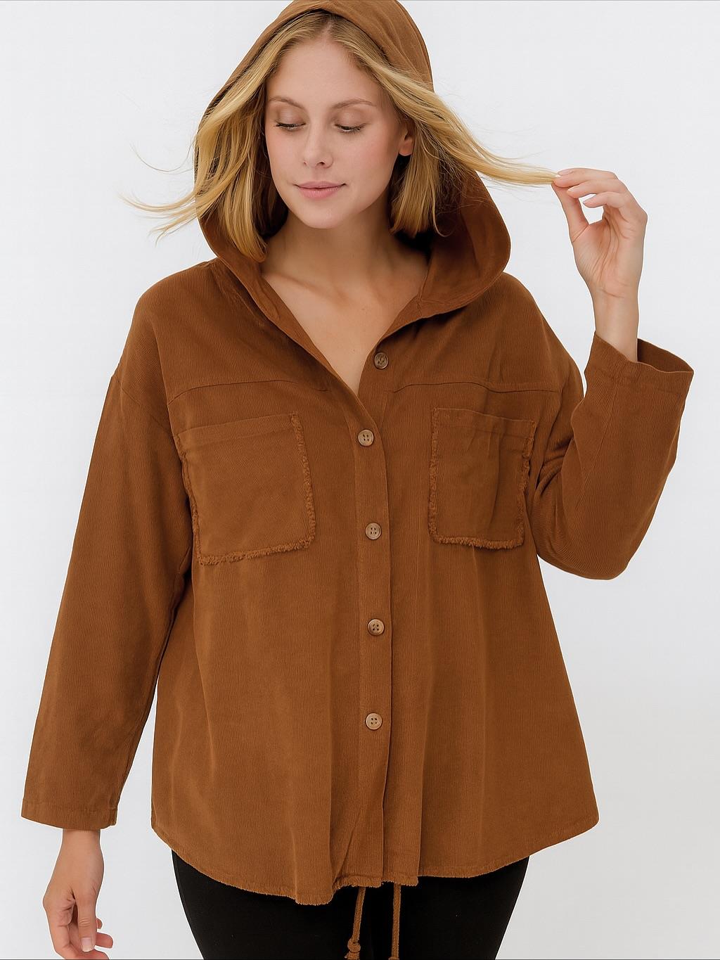 İtalyan Kadife Kapüşonlu Ceket - KAHVE