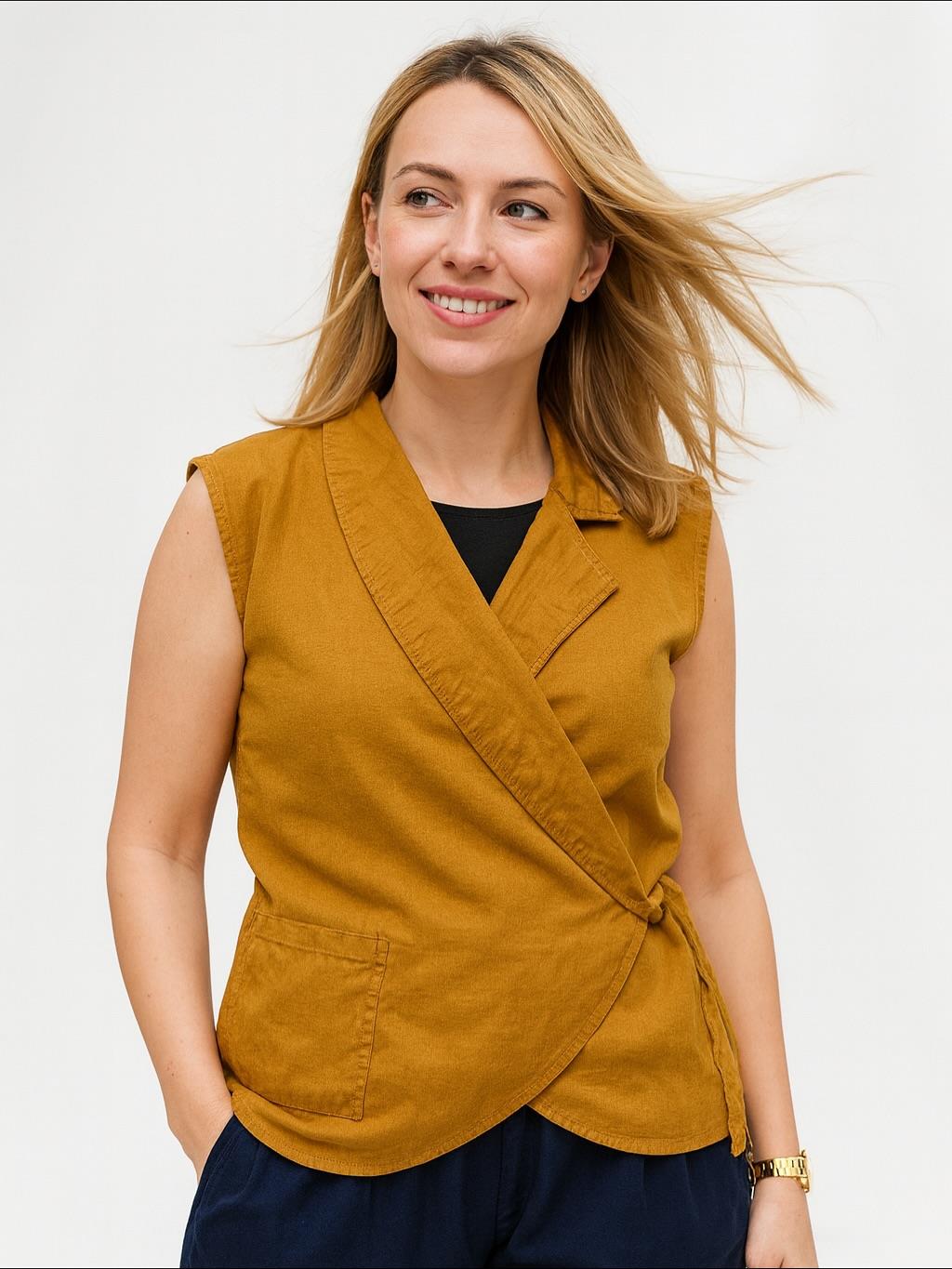 İtalyan Kadife Tasarım Yelek - HARDAL