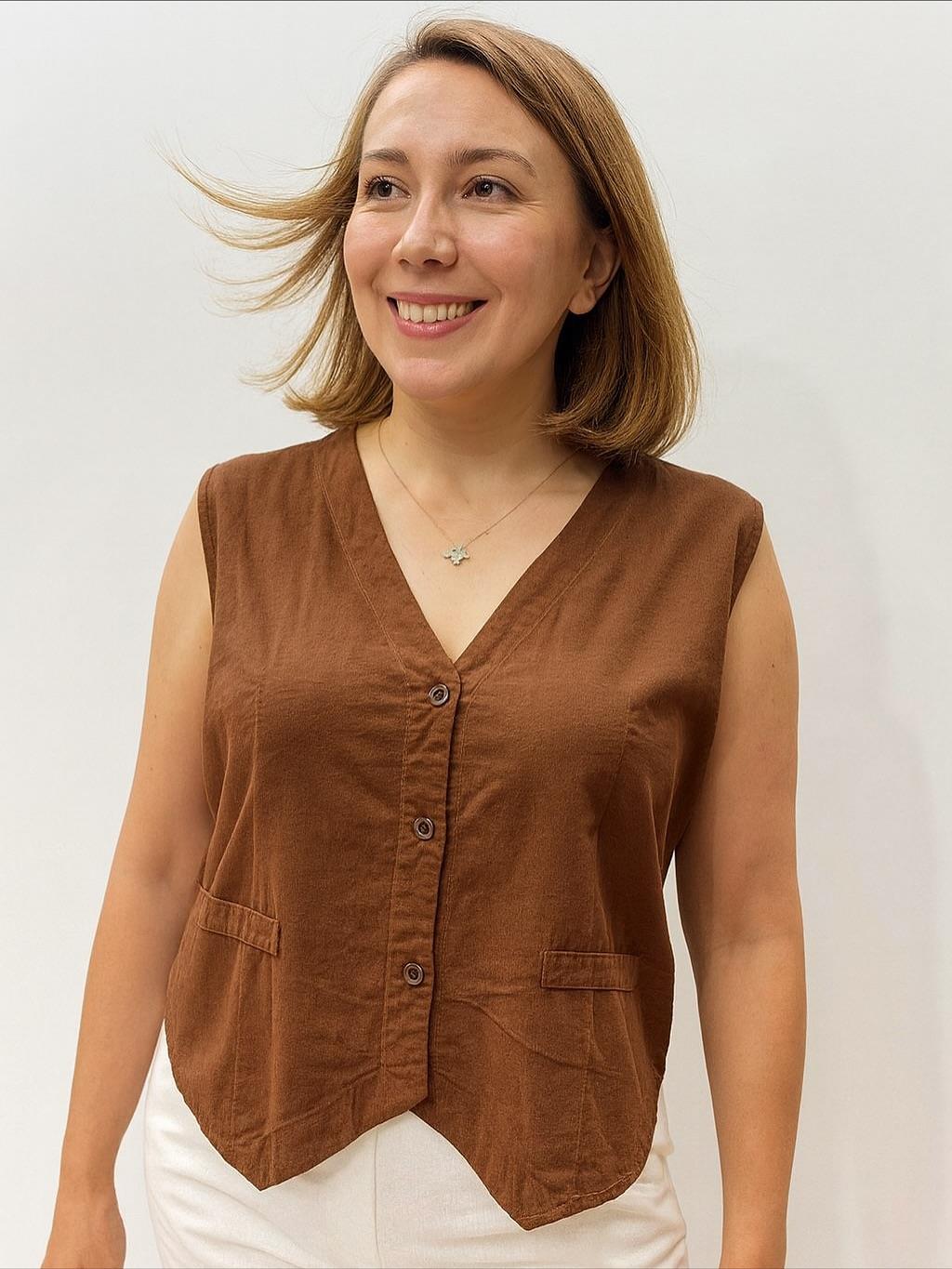 İtalyan Kadife Yelek - AÇIK KAHVE