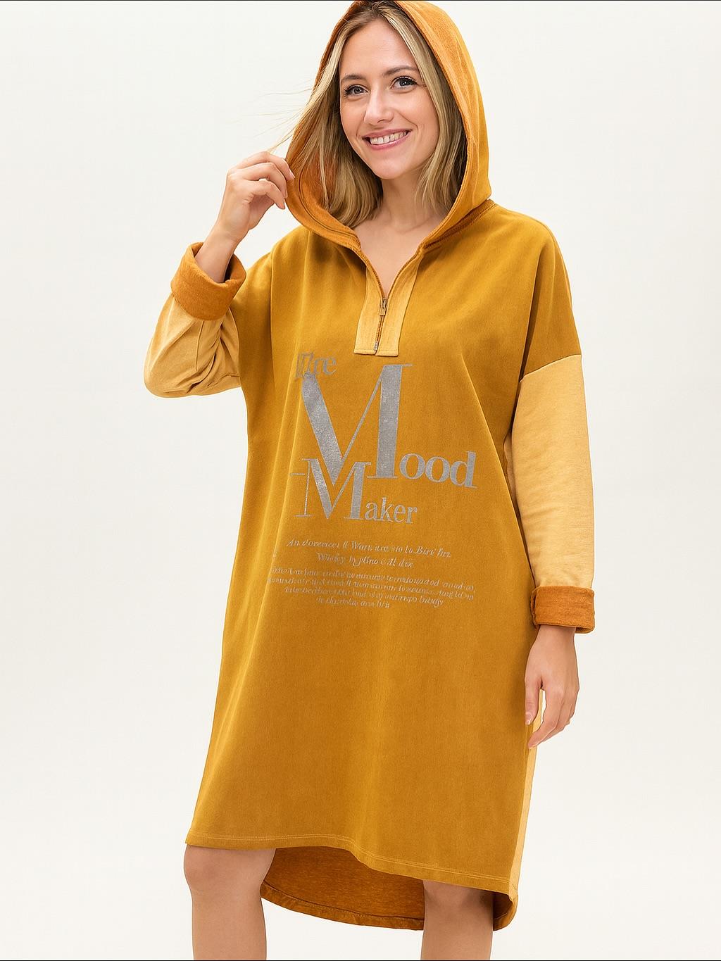 İtalyan Kapüşonlu Nubuk Elbise - HARDAL