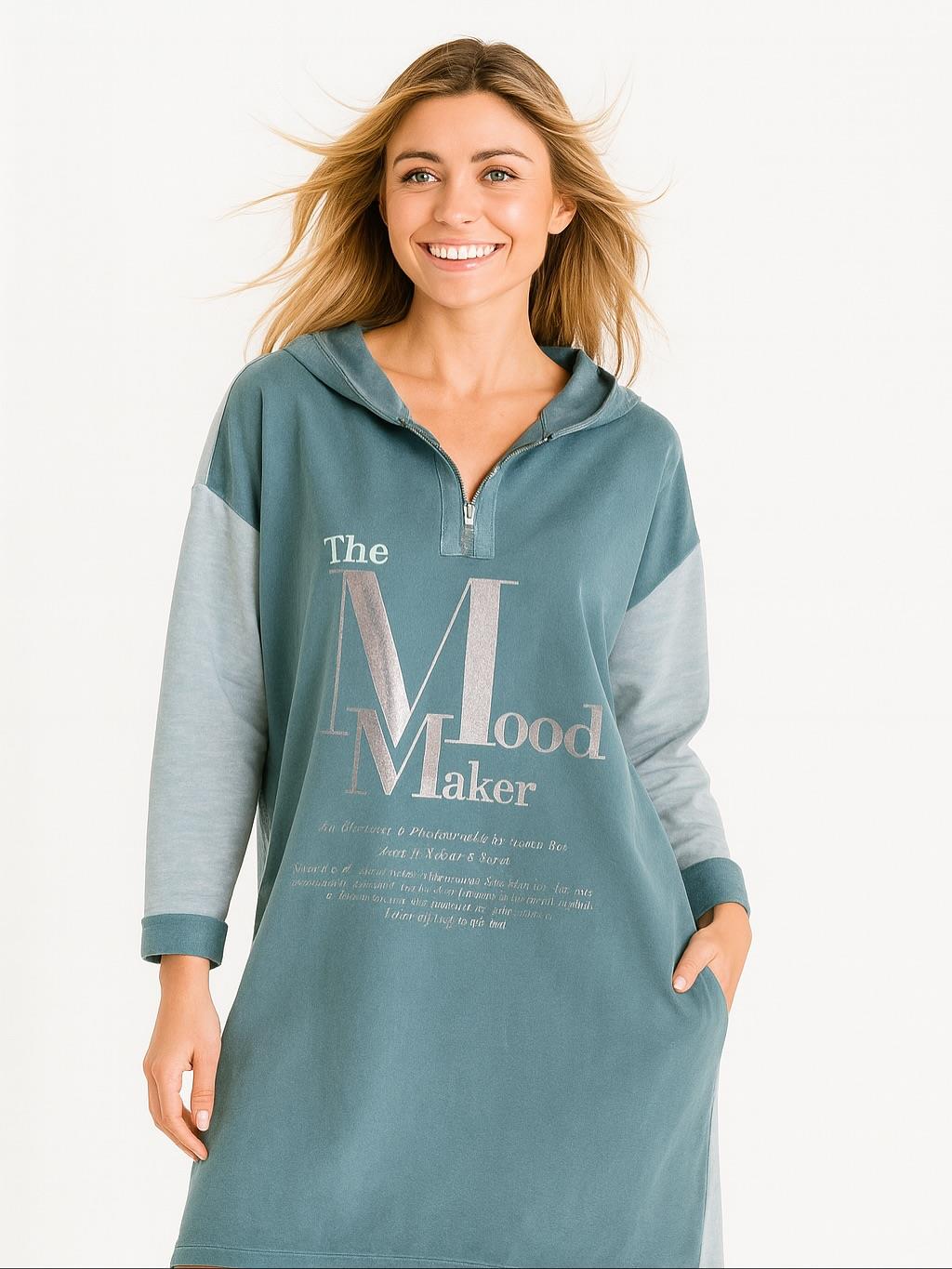 İtalyan Kapüşonlu Nubuk Elbise - İNDİGO