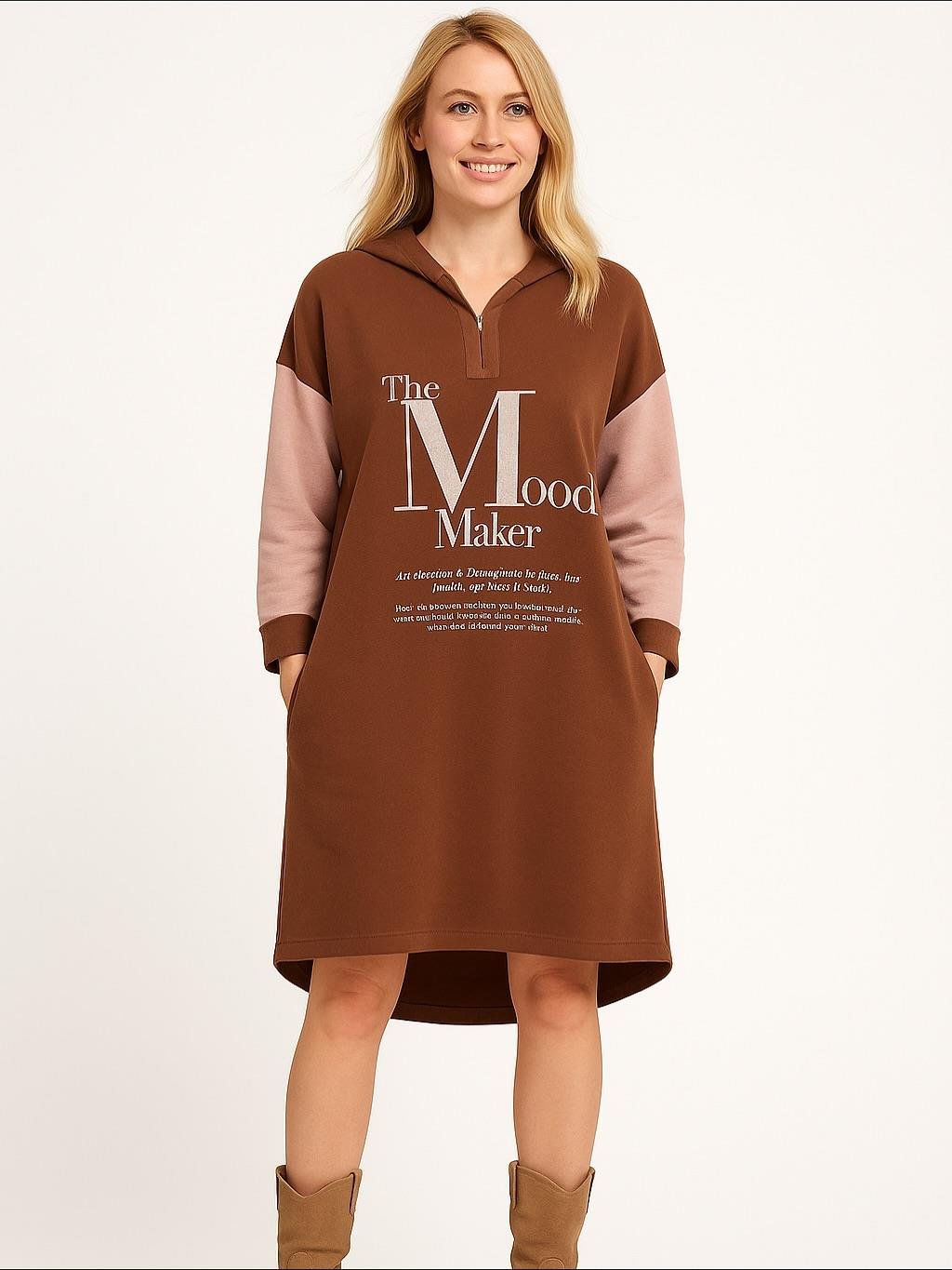 İtalyan Kapüşonlu Nubuk Elbise - KOYU KAHVE