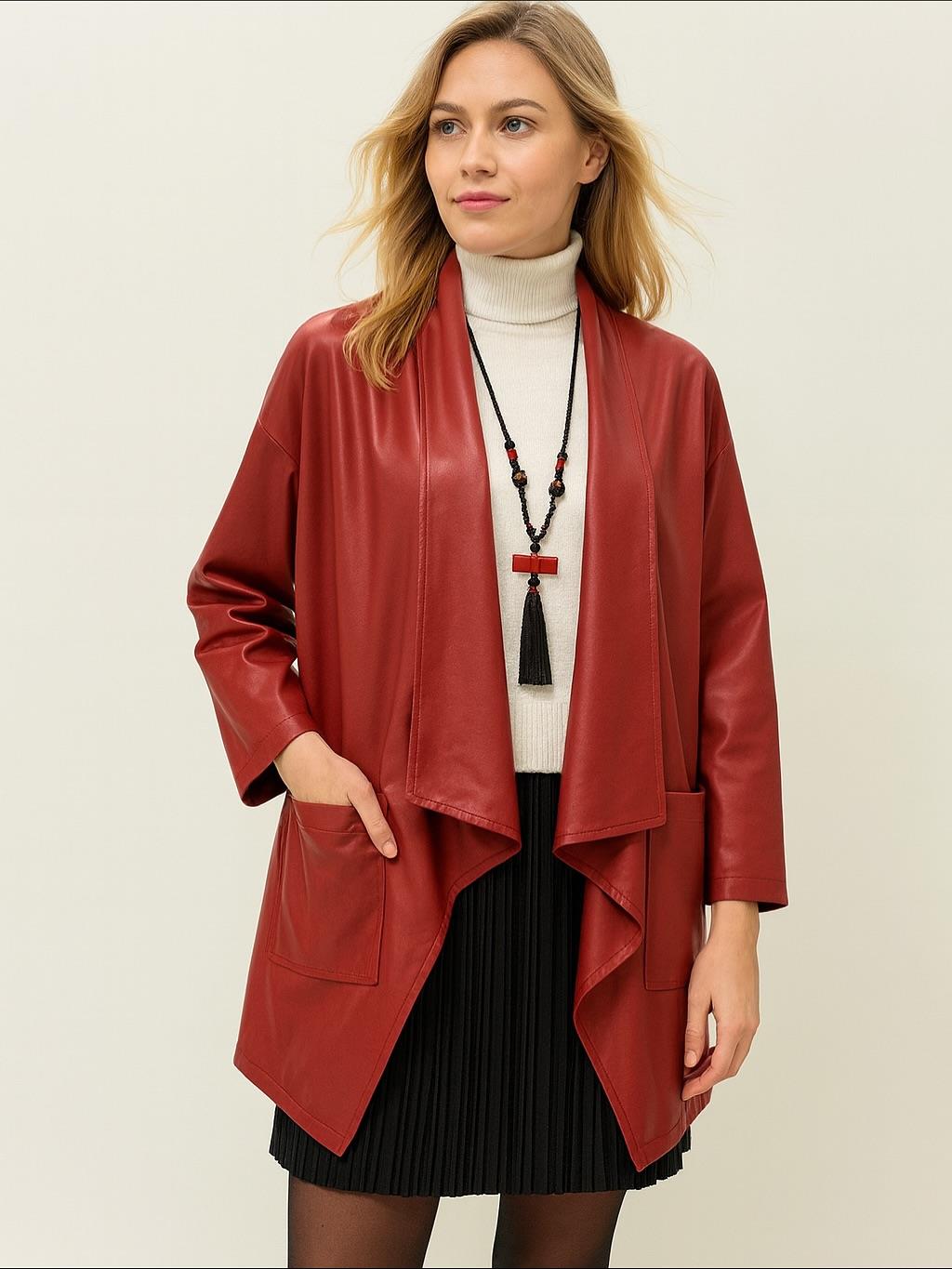 İtalyan Kısa Deri Kap - KIRMIZI (HEB4365)