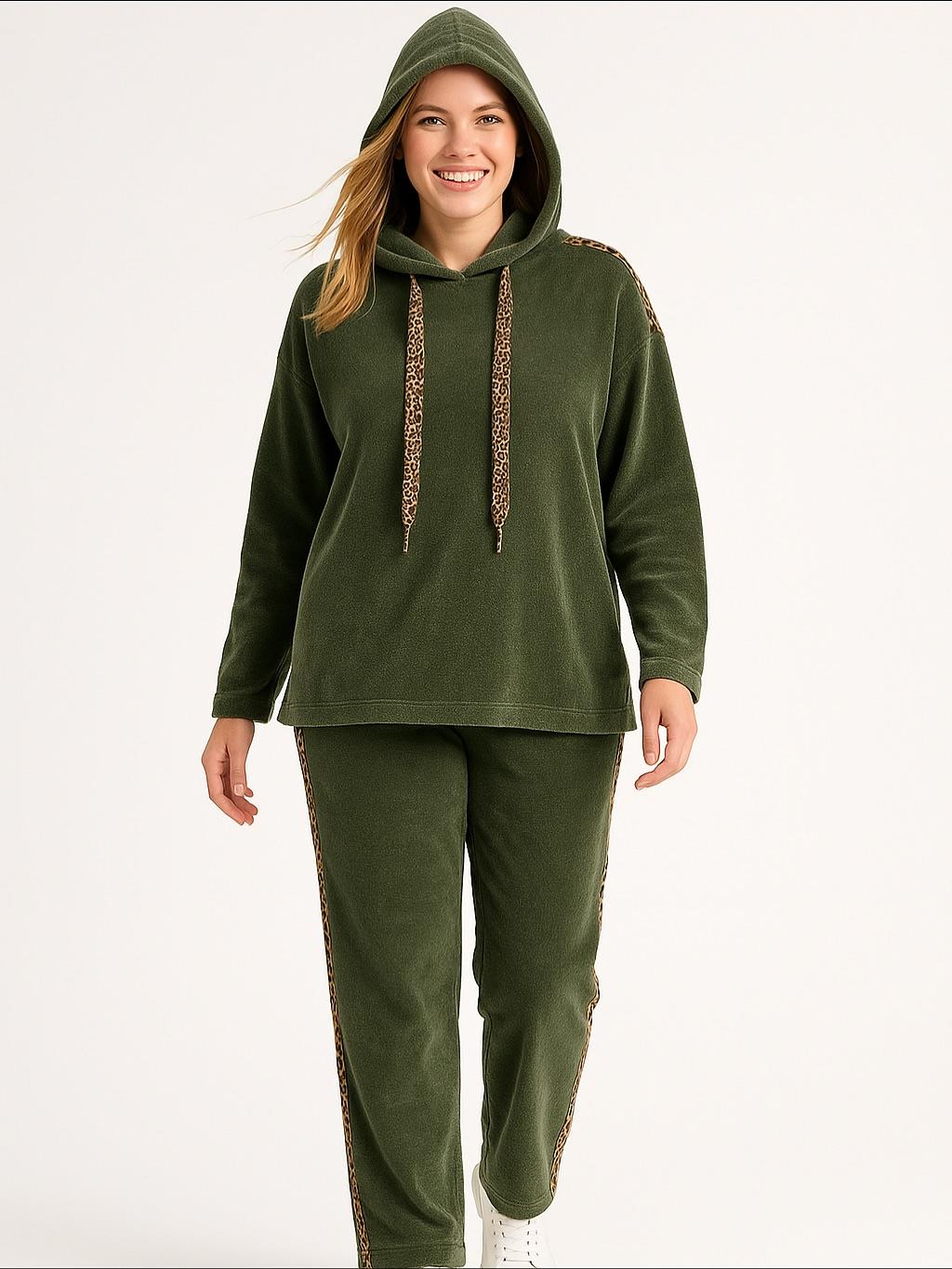 İtalyan Leopar Desenli Kadife Takım - HAKİ