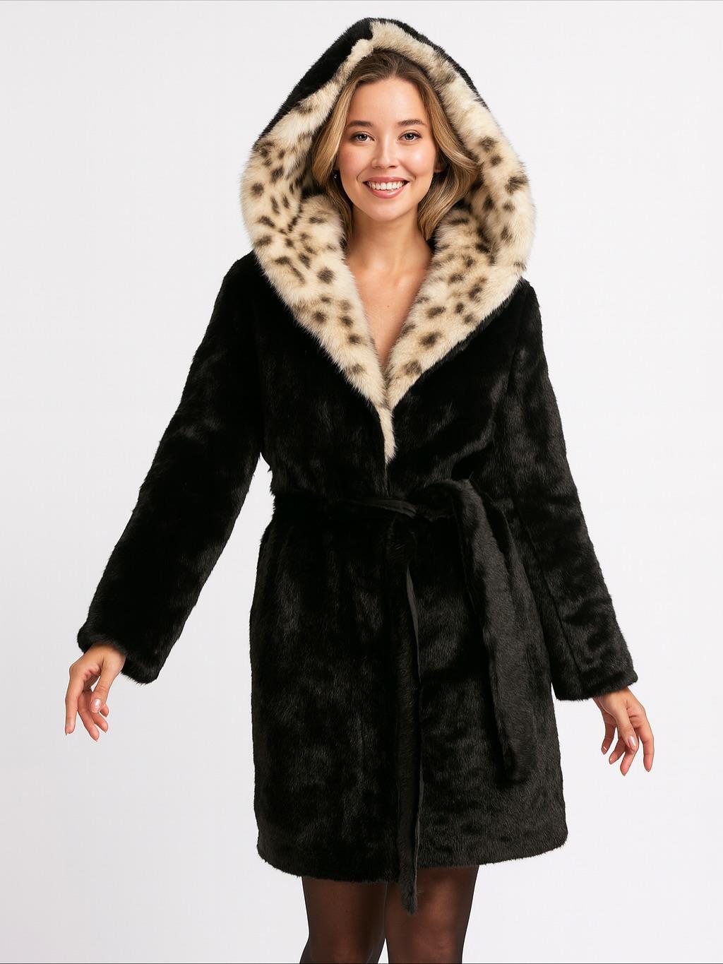İtalyan Leopar Detaylı Kürk - SİYAH