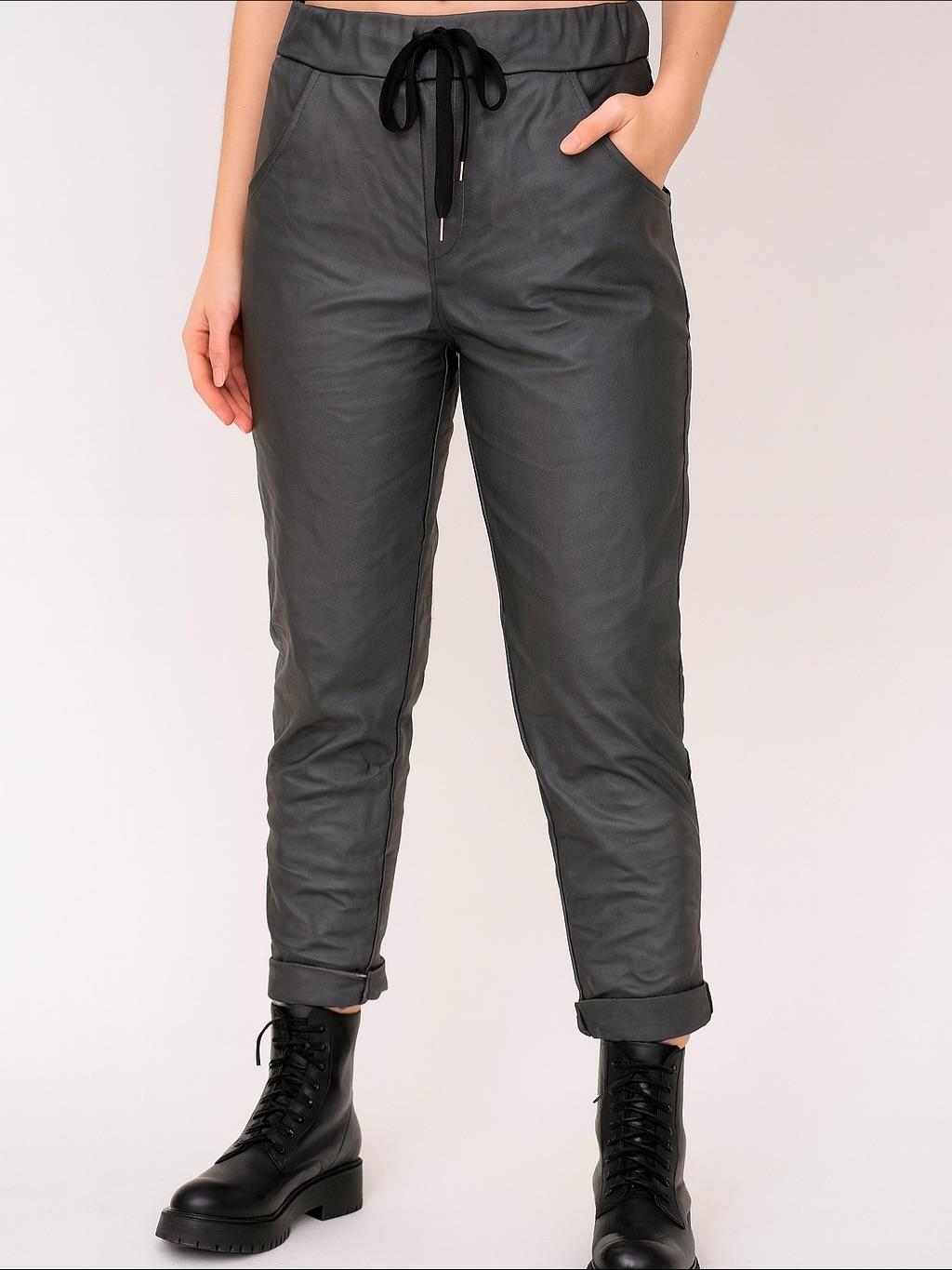 İtalyan Likralı Deri Pantolon - ANTRASİT