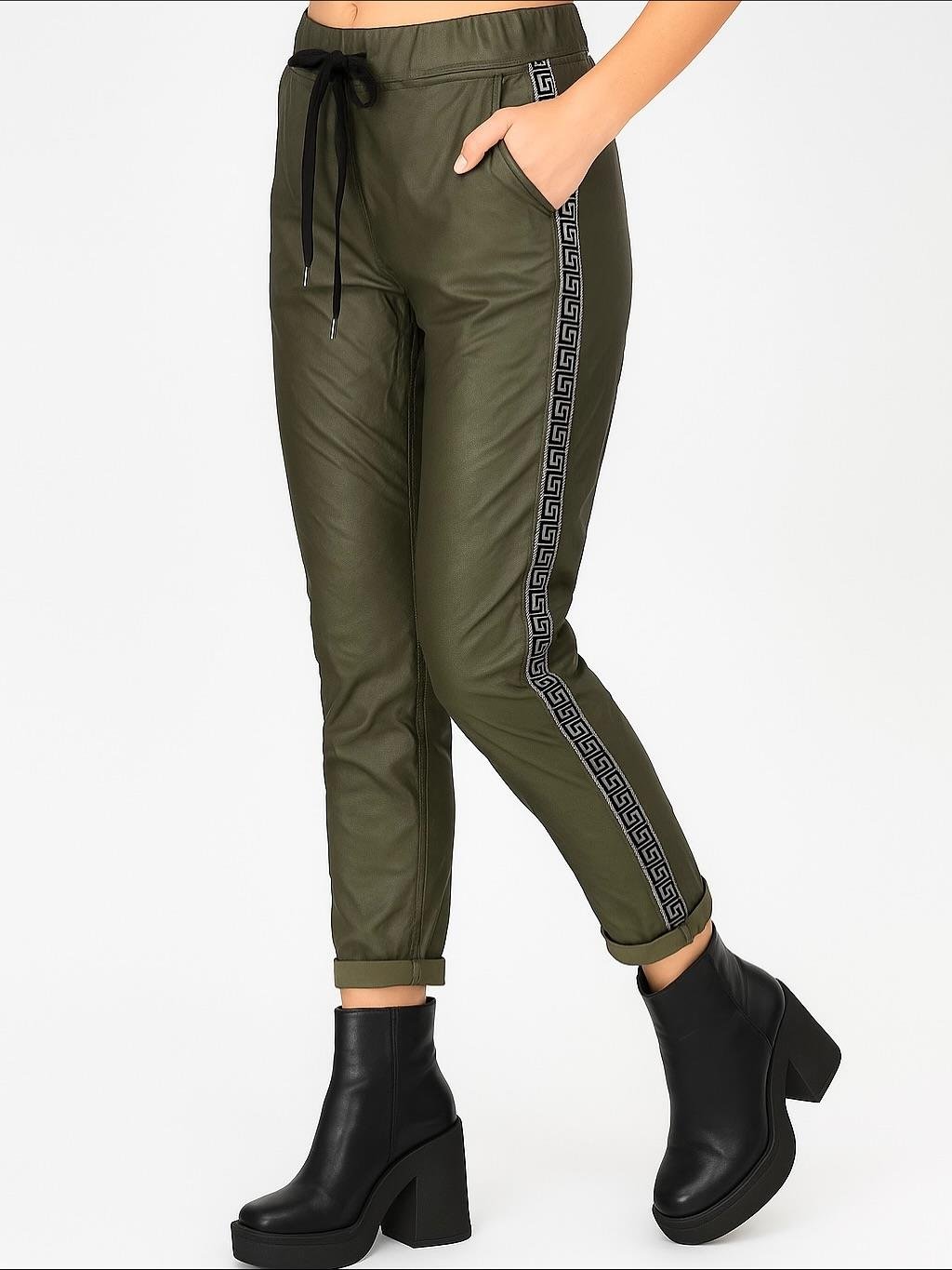 İtalyan Likralı Deri Pantolon - HAKİ (HEB4412)