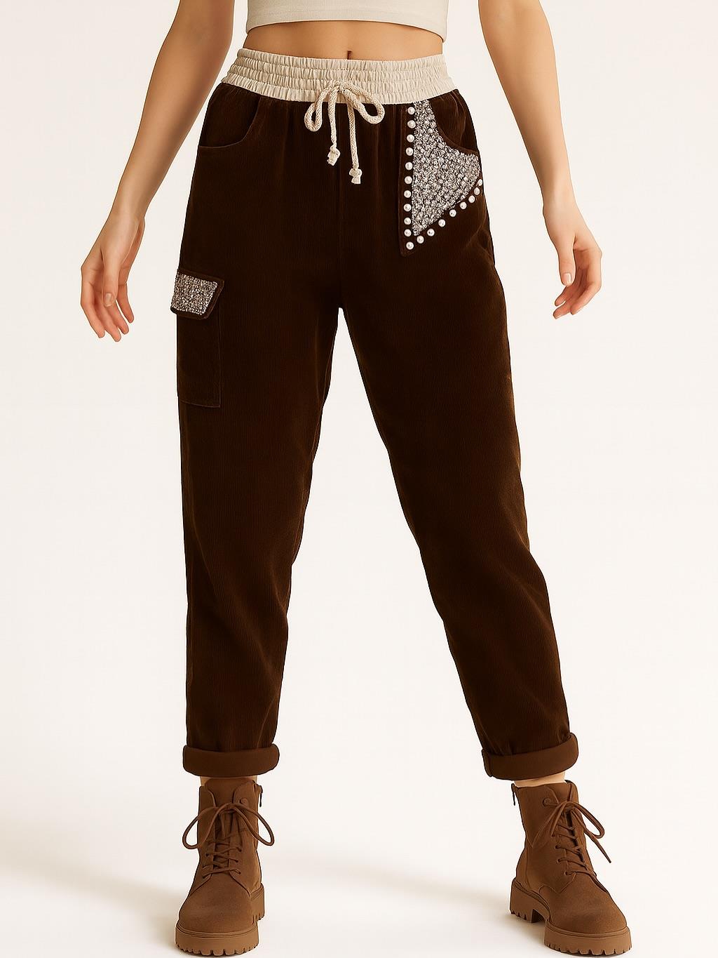 İtalyan Tasarım Kadife Pantolon - KAHVERENGİ