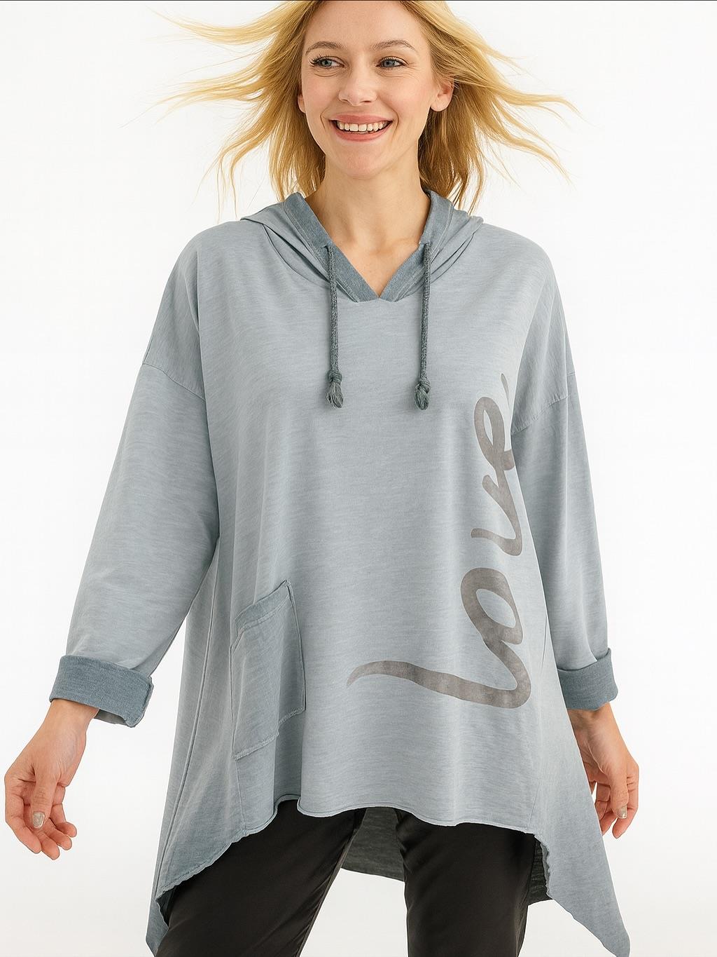 İtalyan Yazı Detaylı Nubuk Bluz - GRİ