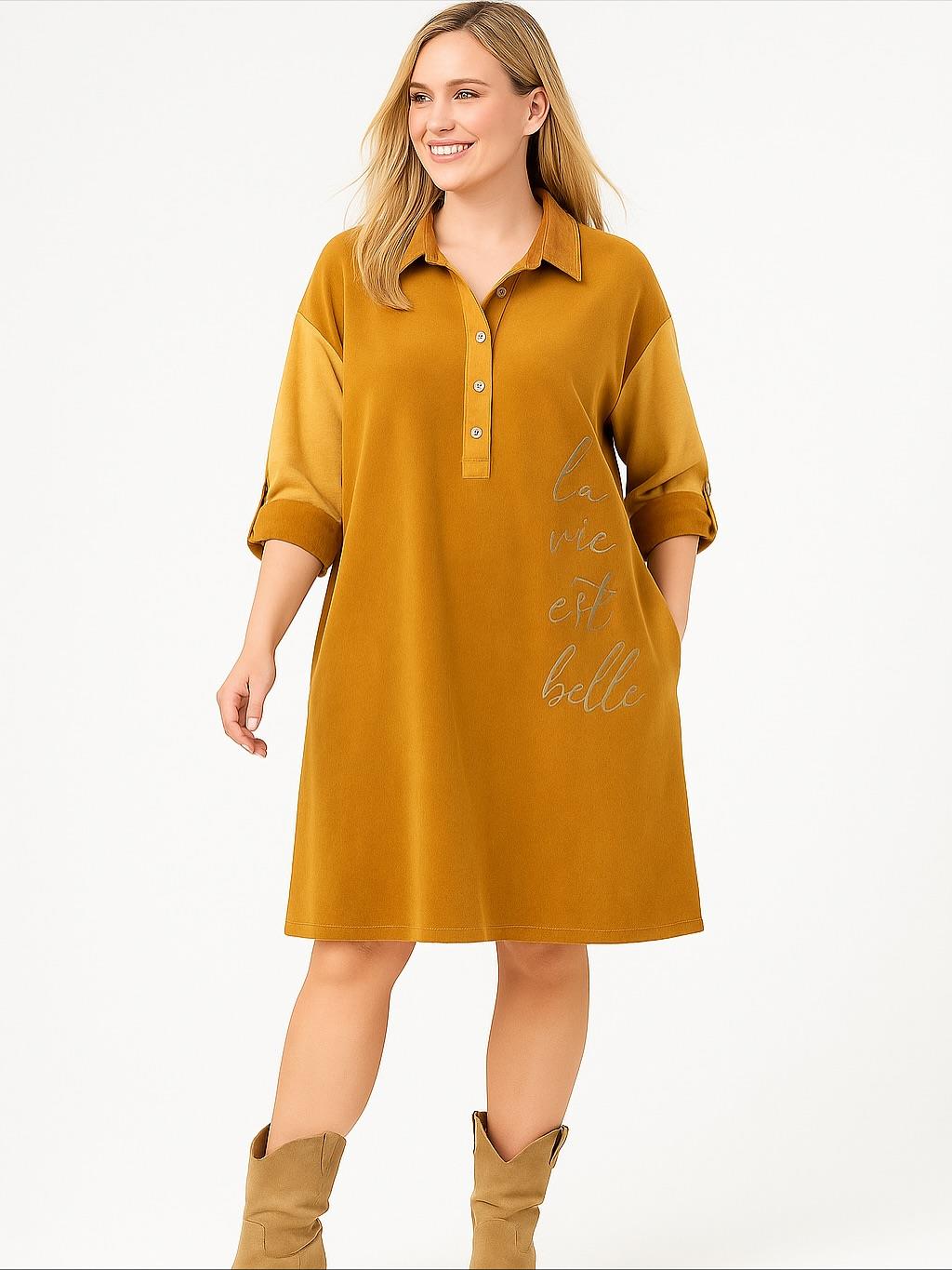 İtalyan Yazı Detaylı Nubuk Elbise - HARDAL